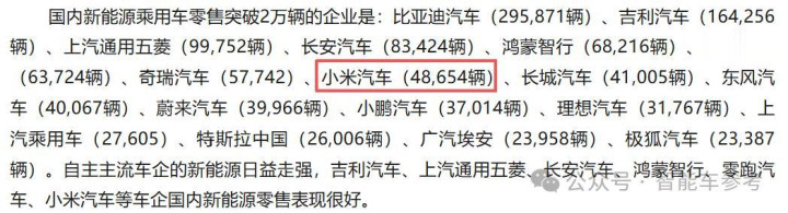 且乘联会10月公布的详细销量数据显示,小米汽车10月销量达到48654辆,在国内车企的新能源乘用车零售销量榜单中排到第八,在新势力车企和品牌中排第三。